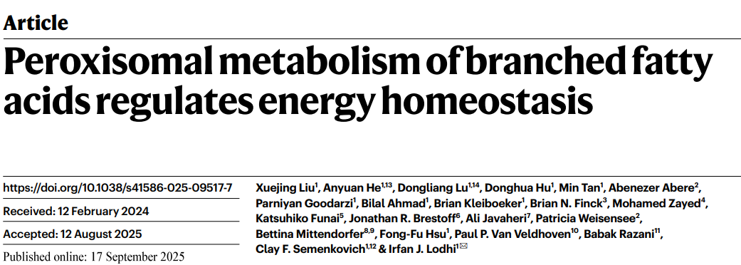 [1] Liu, X., He, A., Lu, D. et al. Peroxisomal metabolism of branched fatty acids regulates energy homeostasis. Nature (2025). https://doi.org/10.1038/s41586-025-09517-7